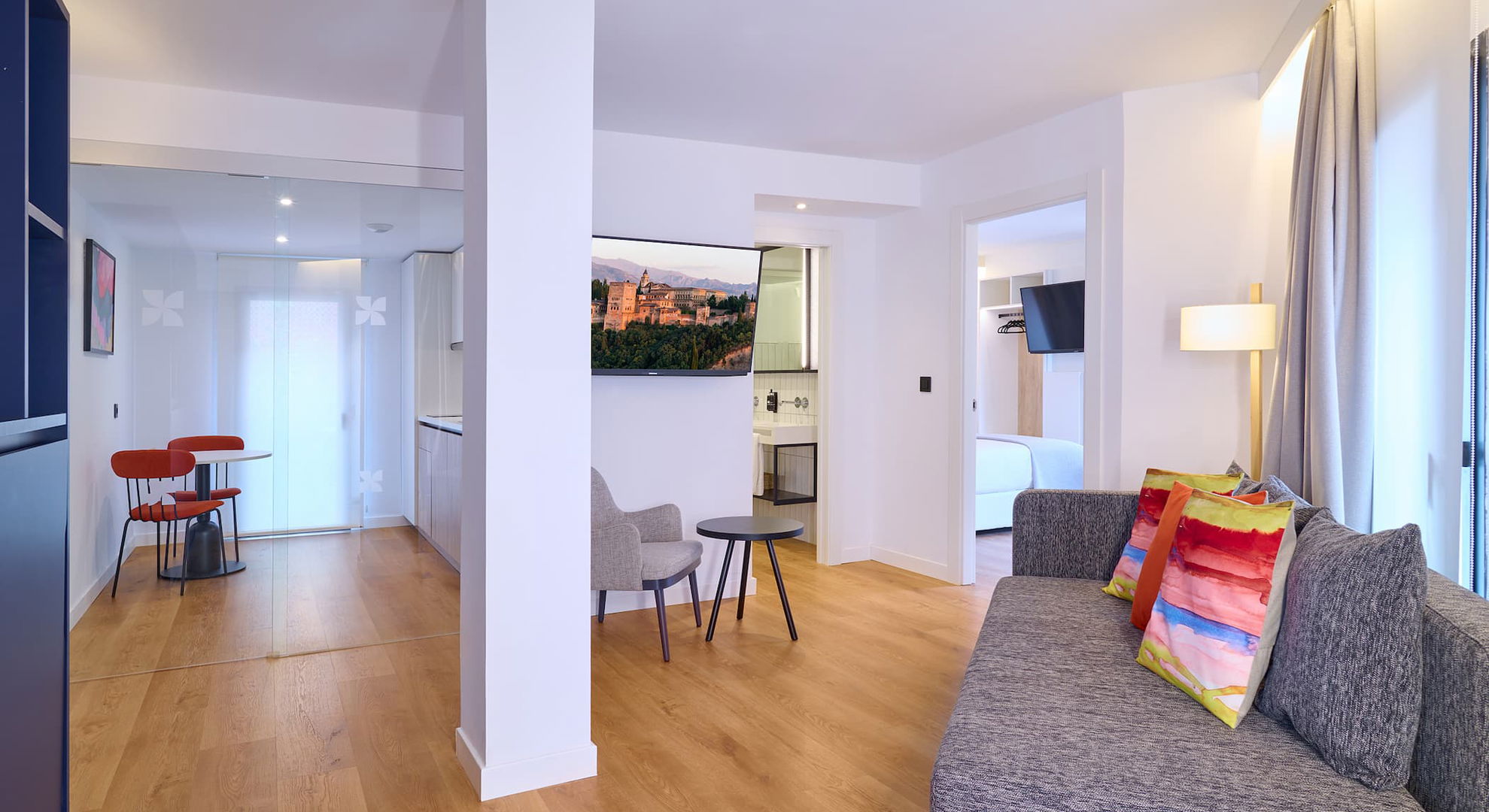 Discover our innovative accommodation concept with deLuna Suites: the perfect combination of the excellent services of one of Granada's best-rated hotels and the spacious comfort of a fully equipped apartment.