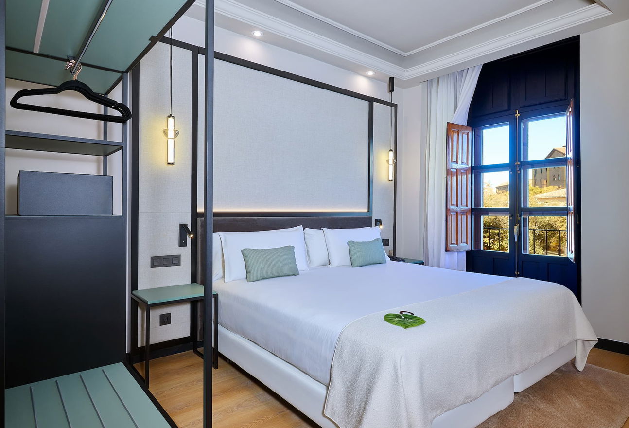 Ideal for couples, business travelers, and even families: at the Boutique Hotel Luna Triunfo Granada, next to the Arco de Elvira and Plaza del Triunfo, couples can enjoy rooms with private patios or views and a rooftop terrace with a seasonal pool; business travelers can enjoy meeting rooms, Wi-Fi, a desk, 24-hour service, and an airport shuttle bus 100 meters away; and families can enjoy Triple and Family rooms, cribs upon request, and a buffet breakfast with extended hours. A direct bus to the Alhambra is 5 minutes away, allowing for hassle-free planning of your day.