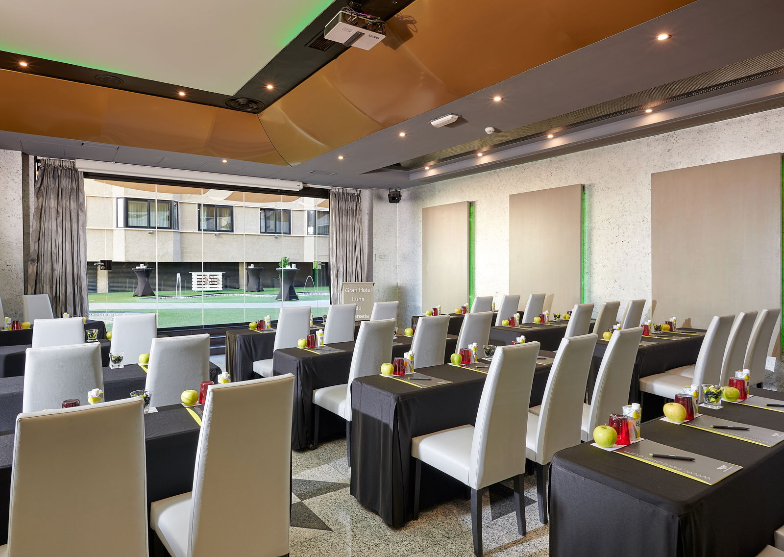 Our photo gallery showcases all the facilities of the Gran Hotel Luna de Granada, such as the spa and wellness area, the heated pool and outdoor pool, the gastrobar, the gym, the paddle tennis court, the children's play area, the sun deck, and the pool bar.