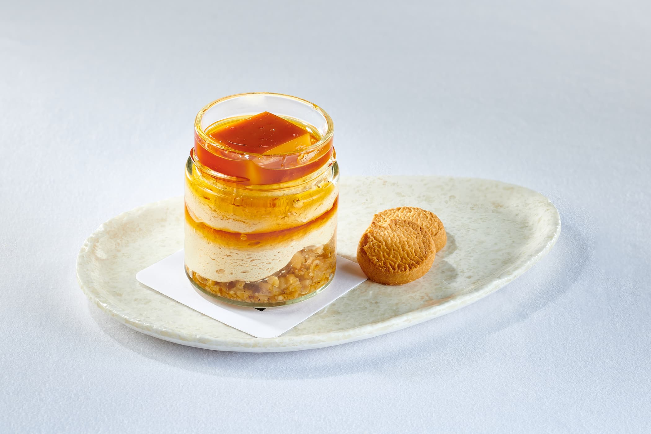 Notre dessert vedette est le lait frit au caramel à l'orange, une délicieuse combinaison de tradition et d'innovation. Son goût délicat et sa texture crémeuse vous séduiront, et la touche d'orange apporte un contraste rafraîchissant. Ne manquez pas cette présentation originale et savoureuse.