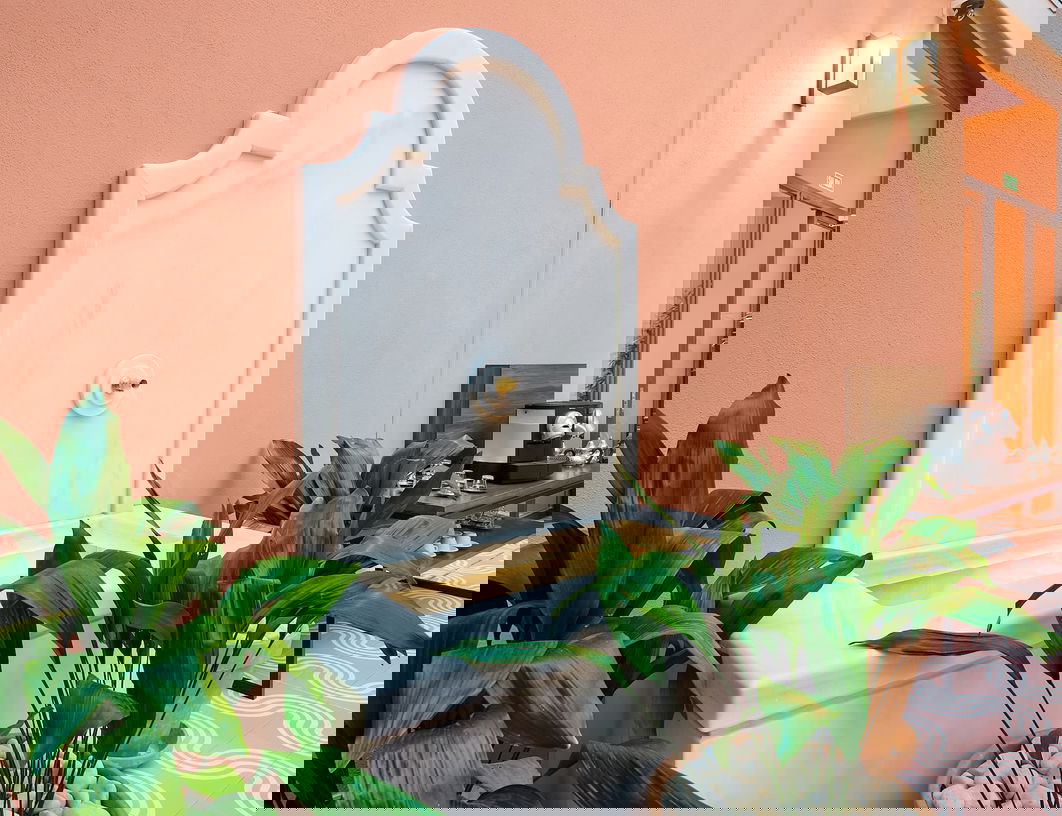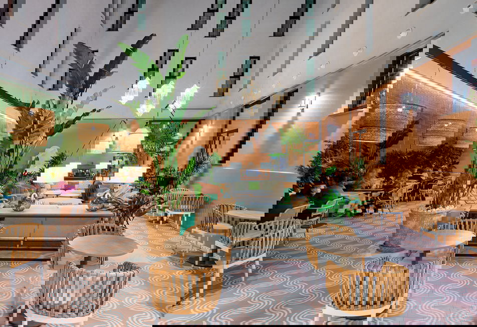 Descubre el patio central, un espacio único, especial, decorado a modo de patio andaluz, con una fuente y rodeado de vegetación, lo que nos evoca a los característicos canales de agua del recinto de la Alhambra.