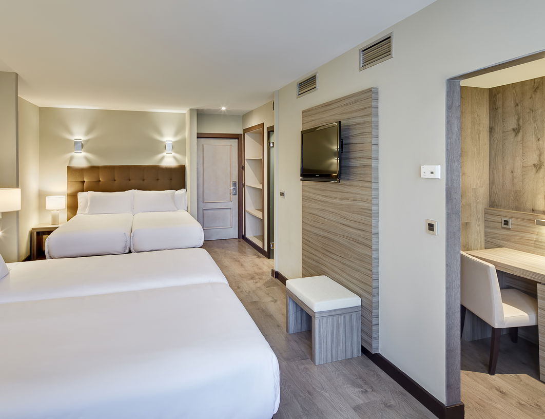 Ponemos a tu disposición nuestras amplias habitaciones familiares, recientemente reformadas y equipadas con todo lo necesario para que aproveches tu estancia en la ciudad con la máxima comodidad. Nuestro hotel muslim friendly resulta ideal para que disfrutes de tu estancia en Granada sin tener que renunciar a un estilo de vida musulmán. Además de unas magníficas instalaciones acondicionadas para familias y un parking de gran capacidad, disponemos de un restaurante en el que podrás disfrutar de un completo Rincón Halal, con certificación halal.