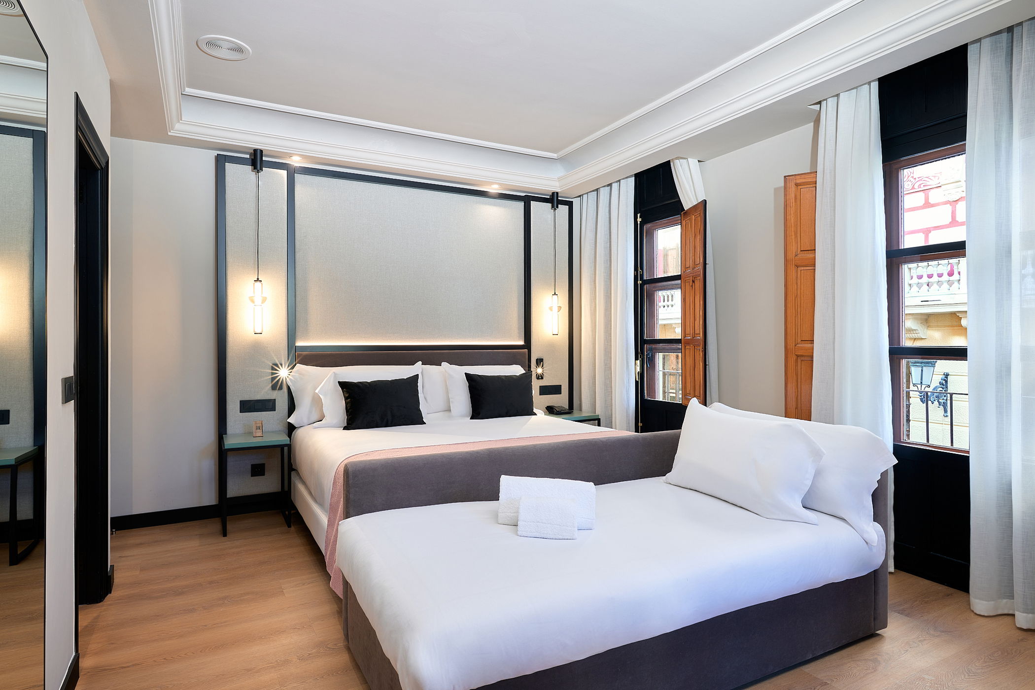 Esplora la nostra galleria e immergiti nell'atmosfera dell'hotel: spazi contemporanei nel centro storico, con luce naturale, legno caldo e un design pensato per il relax. Vedrai il rooftop con la sua piscina stagionale all'aperto, perfetta per rilassarsi all'aria aperta; la hall e la reception, il punto di partenza per ogni programma in città; e le nostre sale riunioni, ideali per combinare viaggio e lavoro senza complicazioni.